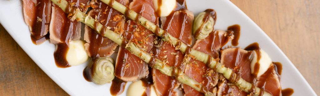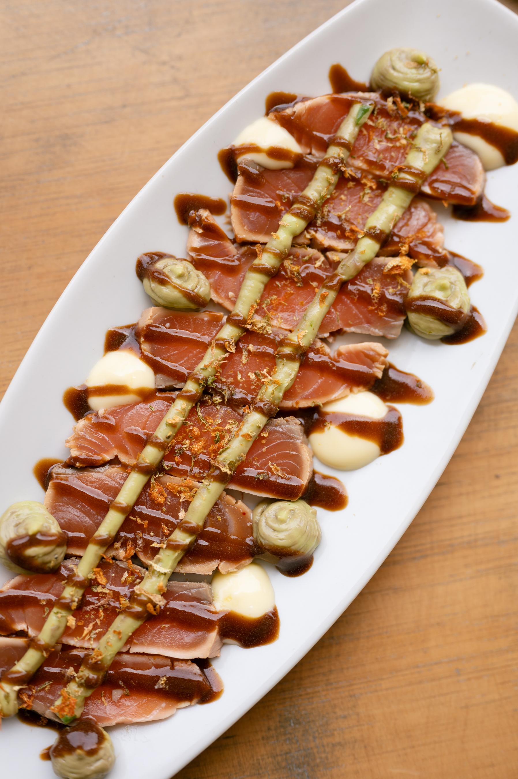 Tataki de salmón marinado en soja con aguacate | O O |