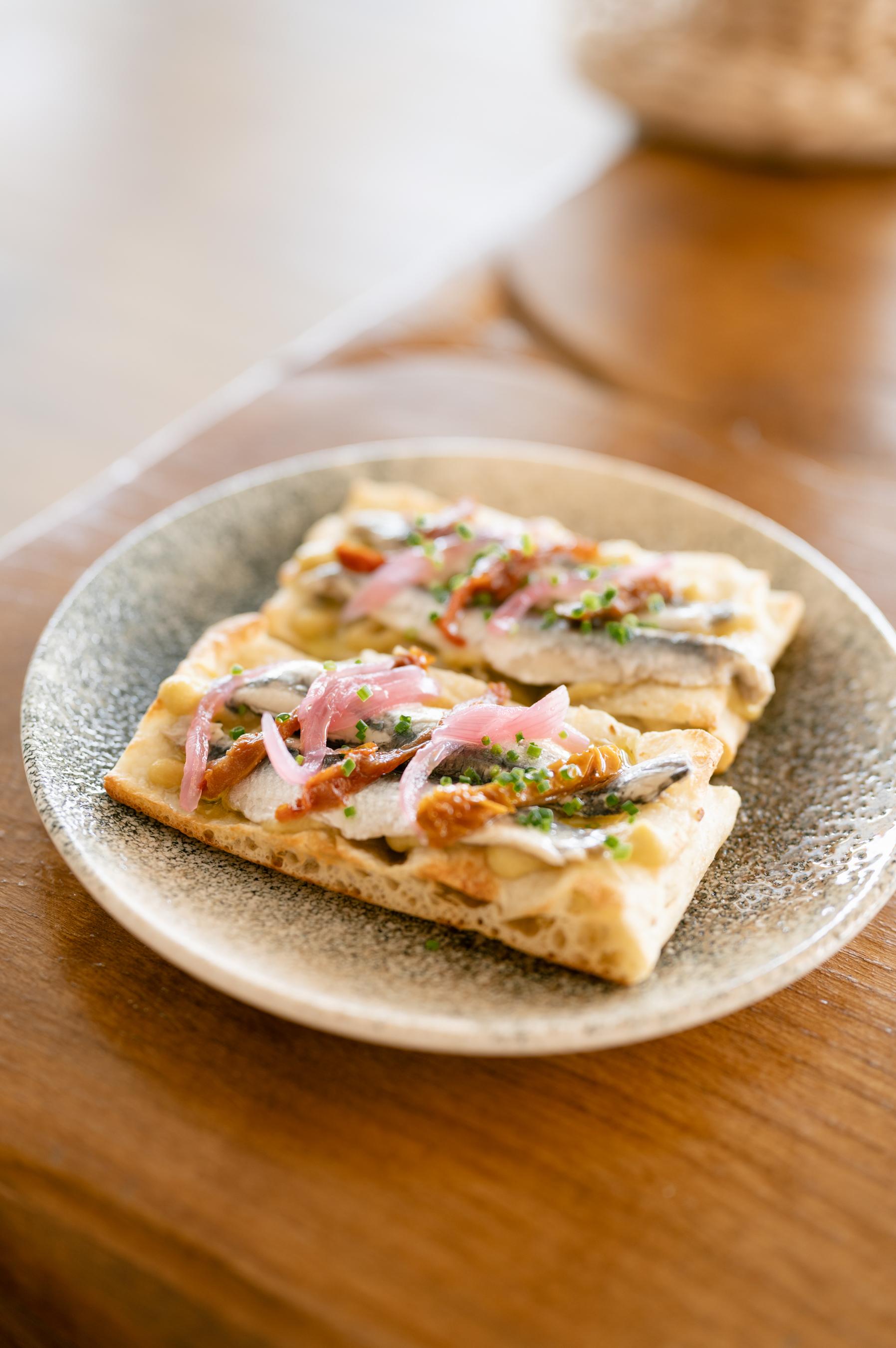 Stracciatella de burrata con tomate semiseco y sardina ahumada | O O |