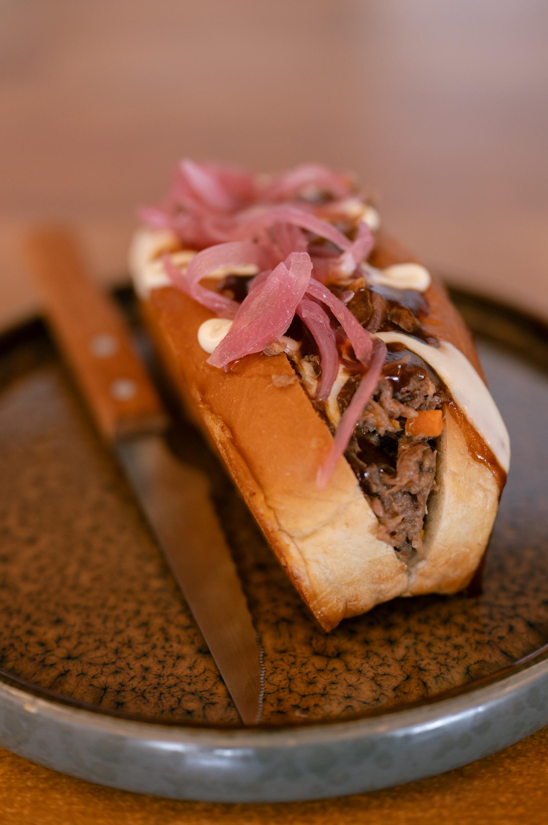 Roll brioche de carne con cebolla encurtida y alioli | O O O |